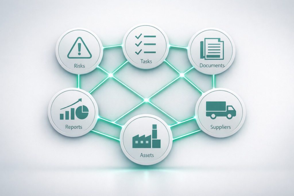 Risks link to actions – Actions produce evidence – Evidence supports assurance, audits and client confidence. That’s deliberate. Because governance only works when the pieces connect – and when people can see the whole picture, not just fragments of it.